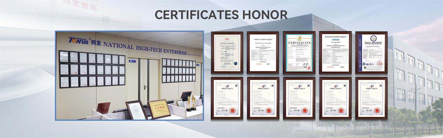 Zhejiang TONVA Plastics Machine Co., Ltd was established in 1993, the company is located in Yuhuan, Taizhou city. TONVA is a professional manufacture for blow molding machine, PET stretch blow molding machine, mould and auxiliary equipment comprehensive enterprise. The company, has passed the IS09001:2016 international quality management system and CE, SGS certification. Based on the well reputation and first-class service, Tonva reaches annual sales volume of 700 sets in domestic and overseas .During the past 30 years, the company has been innovating and introducing advanced technologies from domestic and abroad, and made remarkable achievements in product research and development. At present, TONVA has more than 60 national patients and a full series of machine models,for 1ml to 5000L products Suitable for the production of oil barrels, cosmetics bottles, detergent barrels, sprayer buckets, pesticide bottles, tool kit packaging, Christmas ball, beverage bottles, plastic toys, auto parts, experimental medical equipment, water tank, plastic furniture, safety products, plastic pontoon, and other small to large hollow plastic products.